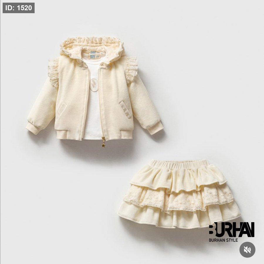 طقم 3 قطع جكيت مع تنورة مخمل وبلوزة قطن