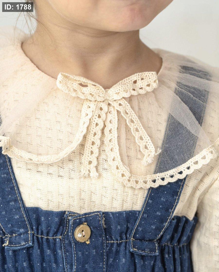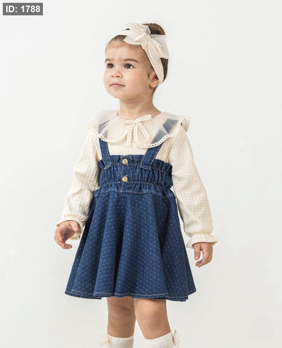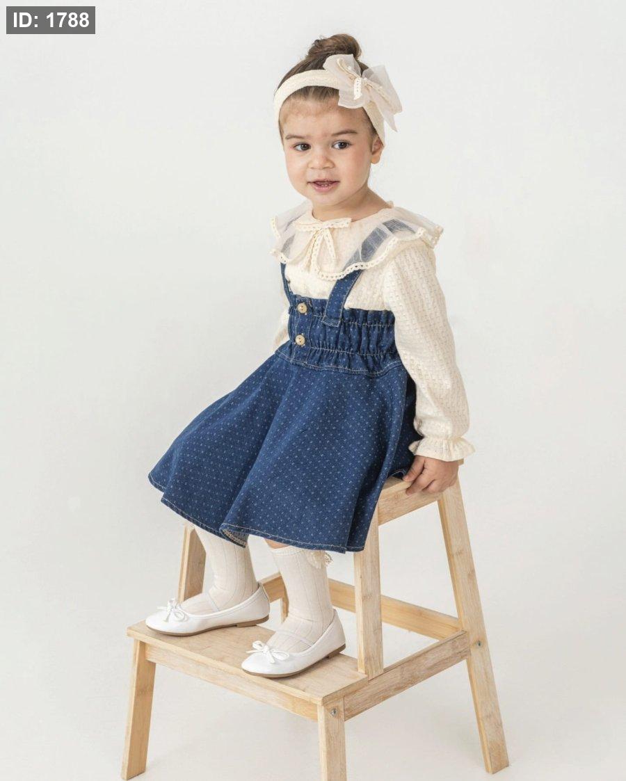 فستان جينز مع بلوزة وبندانة لشعر